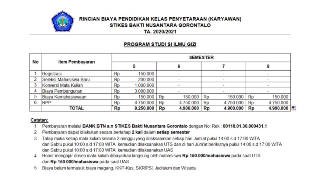 Berikut adalah rincian Biaya Pendidikan Jalur Alih Jenjang (Kelas Karyawan):